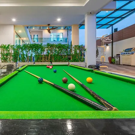 The kitchen amenities at the accommodation feature oven, provided in an outdoor dining area. Mingle with locals while dining in Triple J Restaurant, located in the vicinity of this 9-bathroom villa. U-Tapao Rayong-Pattaya International airport is located a 50-minute drive from 芭提雅21航站楼附近8卧9卫轻奢现代别墅带独立歌房. Billiards are also provided for sports enthusiasts.