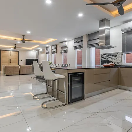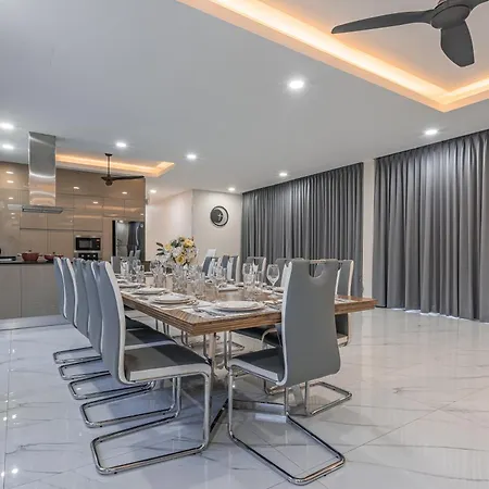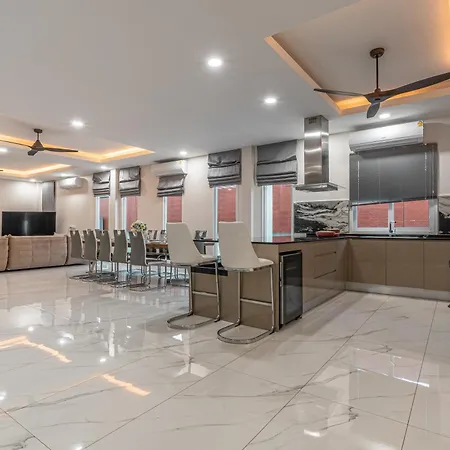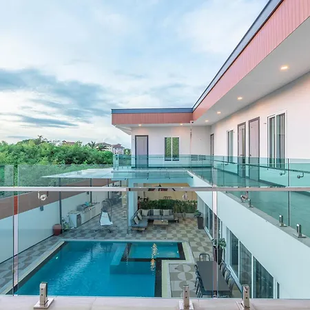 The 9-bedroom 芭提雅21航站楼附近8卧9卫轻奢现代别墅带独立歌房 Pattaya is located approximately 10 minutes by car from Tiffany Cabaret Show and offers guests to enjoy their evening on a terrace with a swimming pool. Offering a private pool views, the Pattaya villa invites guests to visit Teddy Bear Museum, located 1.4 miles away.