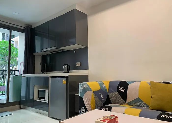 Guests can cook homemade meals in a fully equipped kitchen. C1A1步行街附近 豪华公寓 1楼直通泳池arcadia Beach 高速网络智能电视 is in proximity to Public 'songteo' to Sukhumvit bus stop. A patio has a swimming pool and opens to garden terrace.