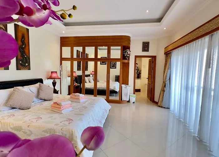 345/6 หมู่ 12 ต.หนองปรือ อ.บางละมุง จ.ชลบุรีLocated merely 8 minutes' walk from Phra Tamnak, the 5-bedroom Luxury Pool Villa 4 Bedroom 900M Beach 1.5 Km Downtown Pattaya features a private pool with a patio. Offering guests to enjoy a terrace,…View details+from