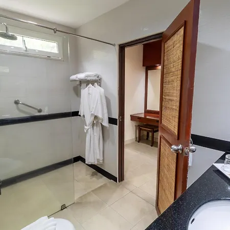 The rooms comprise a seating area complete with climate control, as well as a flat-screen TV with satellite channels and cable channels. Along with coffee/tea making equipment, the rooms are furnished with a writing desk. The spacious rooms offer views of the tropical garden.