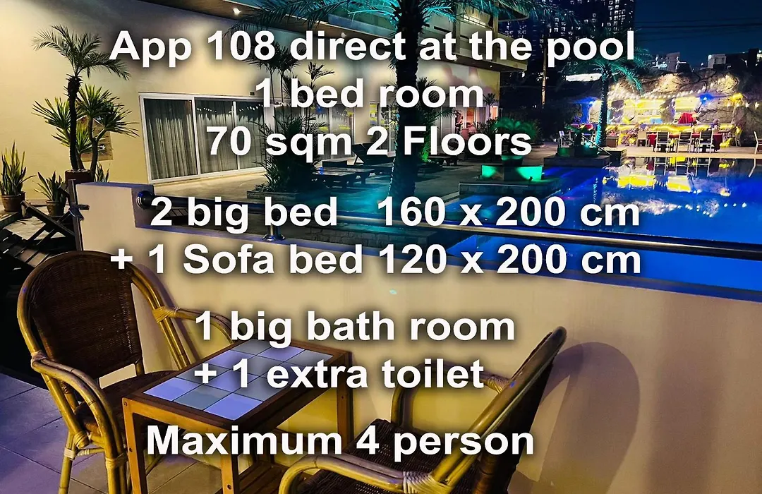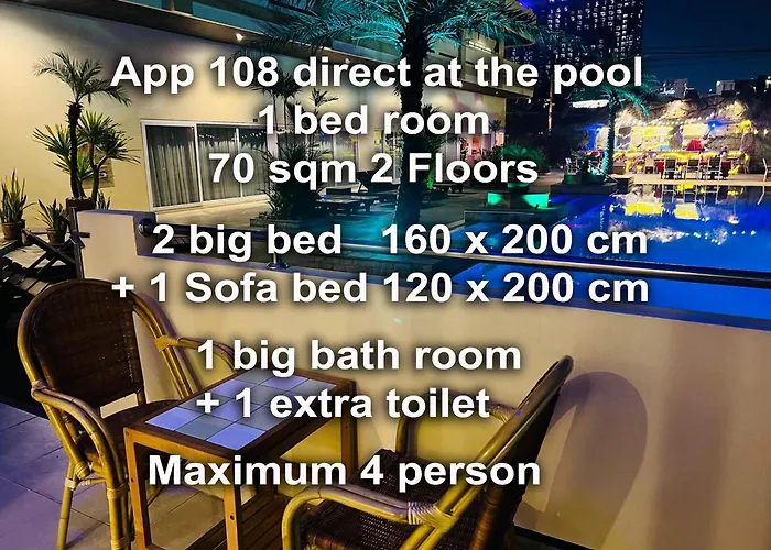 The apartment is located 1.5 miles from Bottle Art Musuem Museum and is 1.3 miles from the beach of Pattaya. The accommodation is about a 10-minute walk from food market, and also only steps away from Na Spa. 1.7 miles from the apartment you will find Sanctuary of Truth.