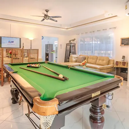 Offering a solarium, the 3-bedroom Villa C Near Walking Street Electricity Included Pattaya is located 19 minutes' stroll from Thep Prasit Night Market. Guests can enjoy billiards at the 3-bathroom villa, located 2.7 miles from Art in Paradise.